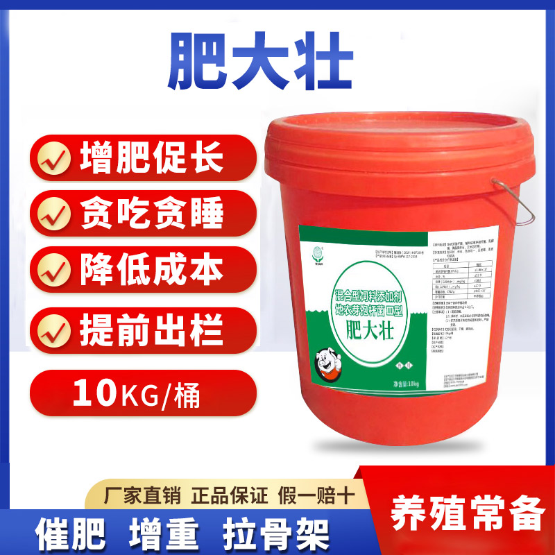 第五用添加剂,“肥大壮”进行催肥,一般来说我们根据养殖的品种规划好猪的出栏体重和催肥时间。断奶后直接添加开始增肥!