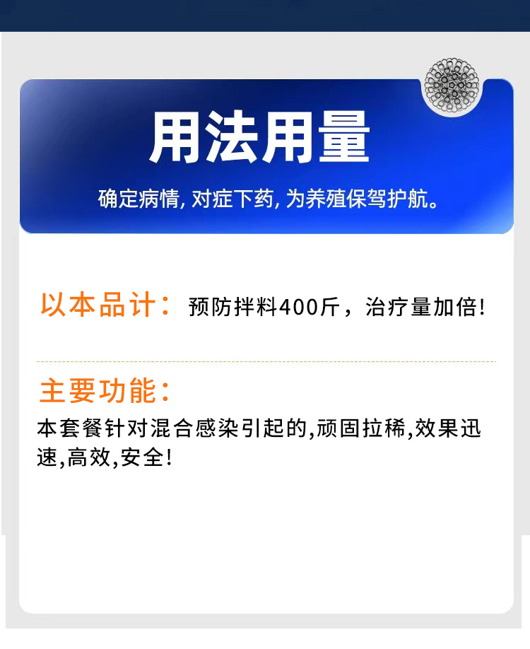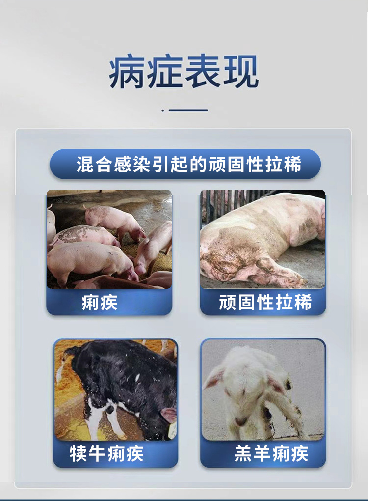 产品简介:针对混合感染引起的顽固性拉稀,效果迅速,高效安全!
