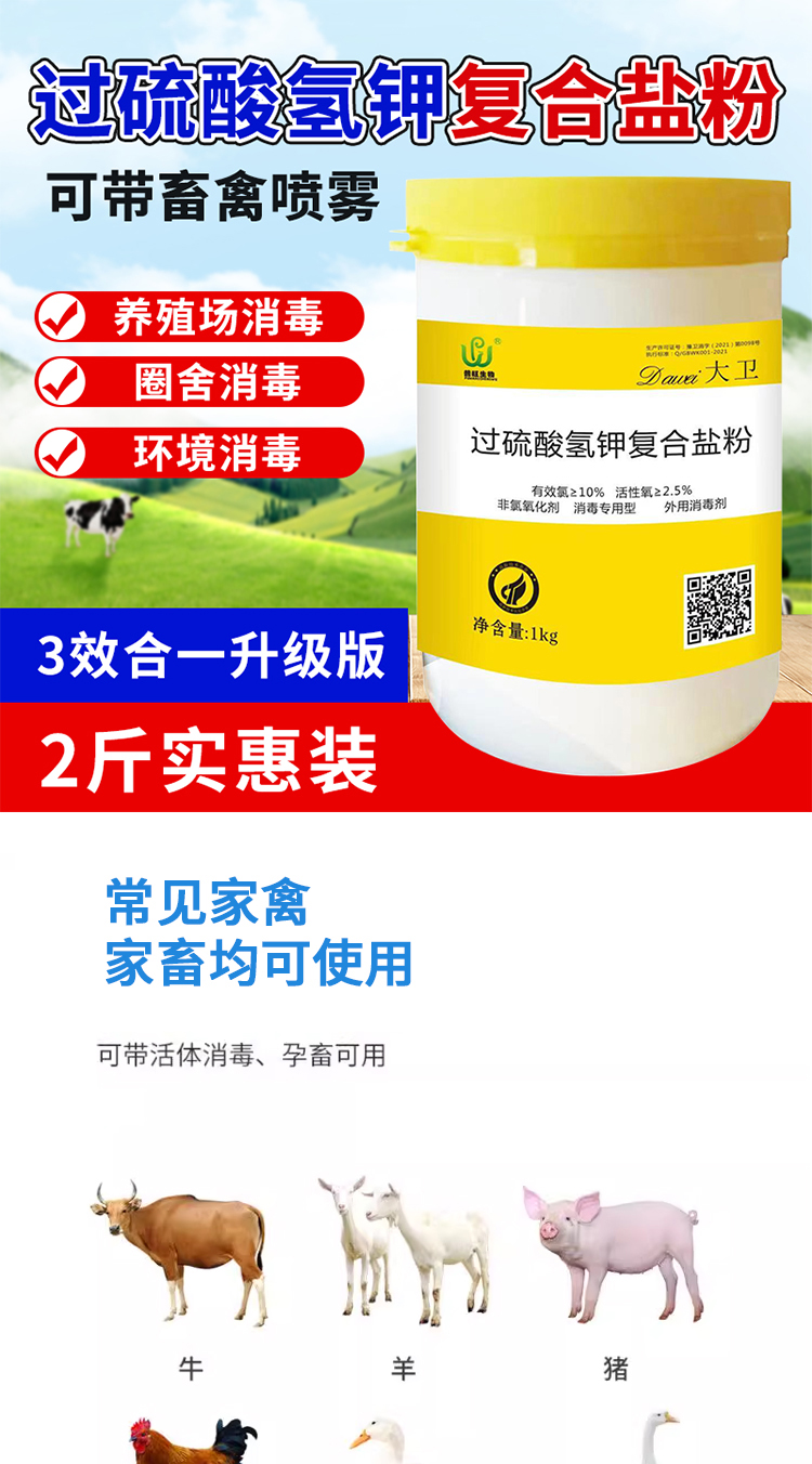 2、三效合一,对细菌、病毒、支原体、真菌的不同结构起到协同杀灭作用,尤其对当前流行的病毒(非洲猪瘟、圆环蓝耳病毒、口蹄疫病毒有特效);