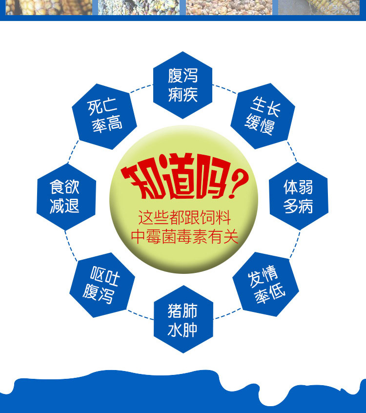 本品适用于黄曲霉素、玉米赤霉烯酮、呕吐霉素等各种霉菌毒素污染的猪饲料、禽料、牛料。" />