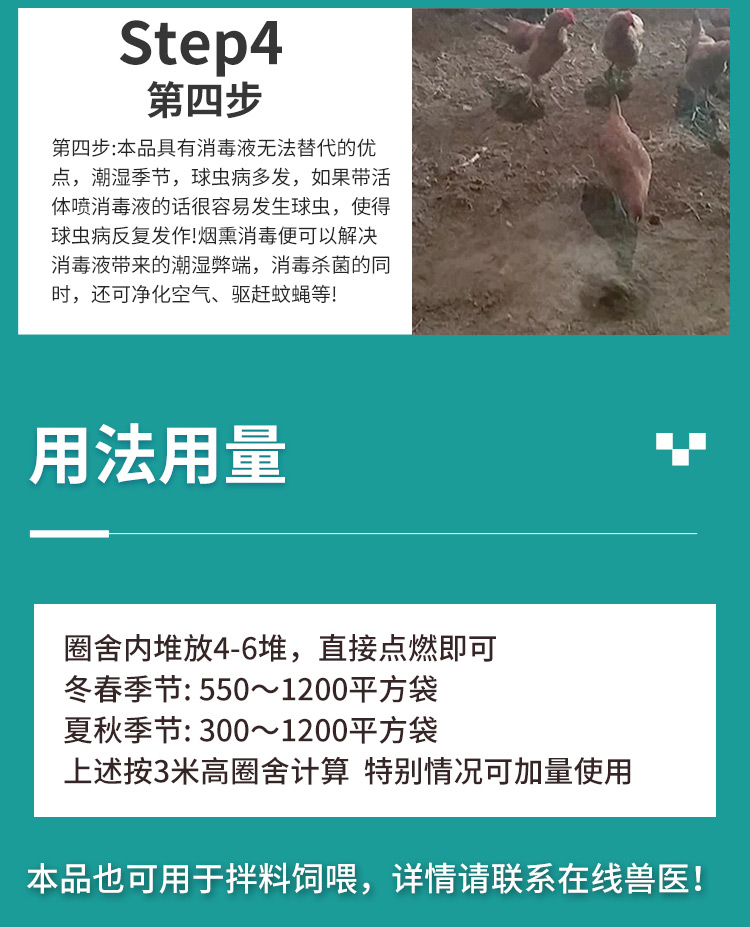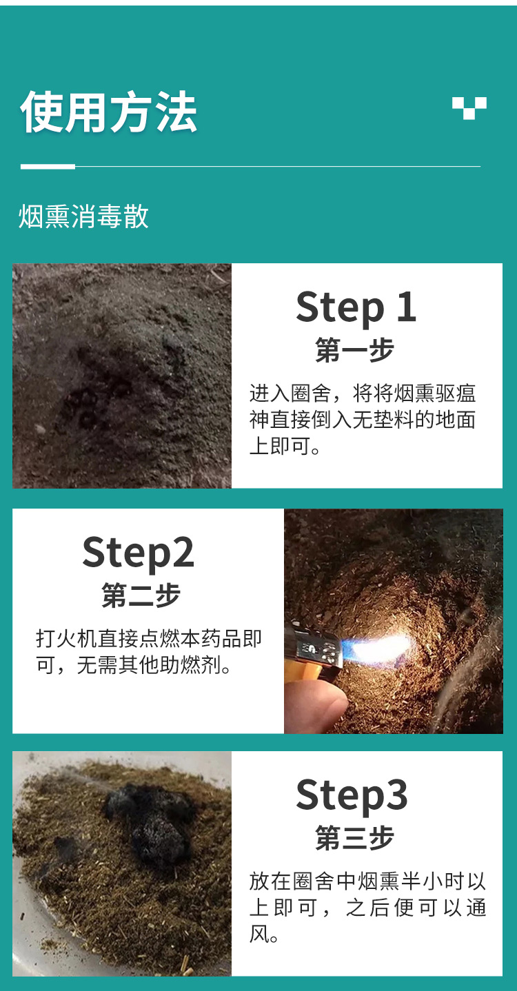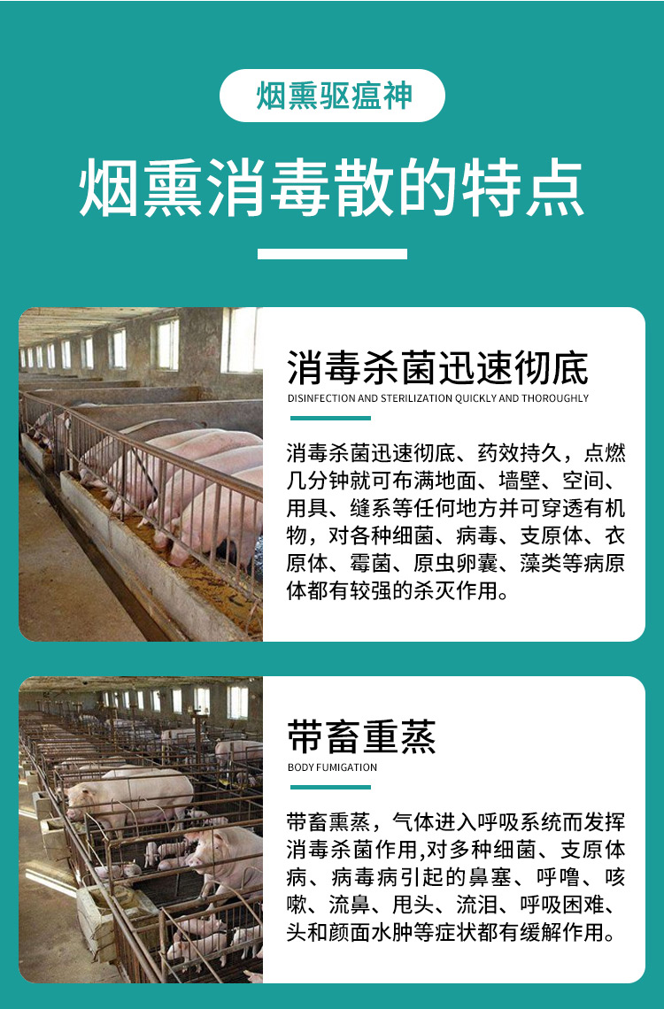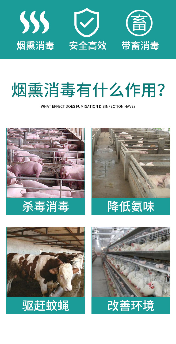 产品简介:适用于各种养殖动物烟熏消毒,强力杀死各种病原体,不耐药,无残留。