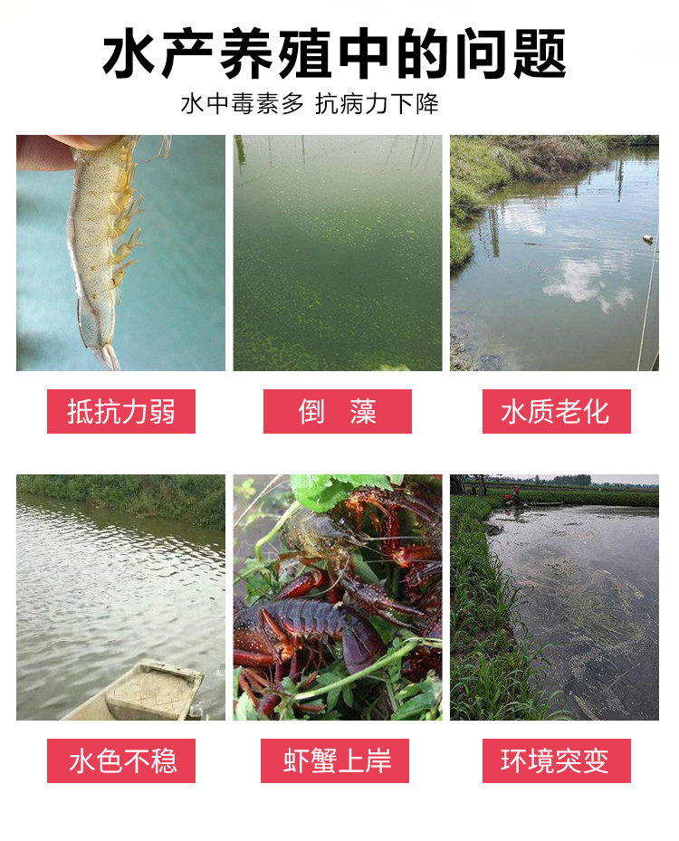 产品简介:调节虾蟹鱼等水产动物的营养代谢增强水产动物的抵抗力 缓解因气候突变、拉网、分池、温差过大水质变化等不良因素引起的应激反应。