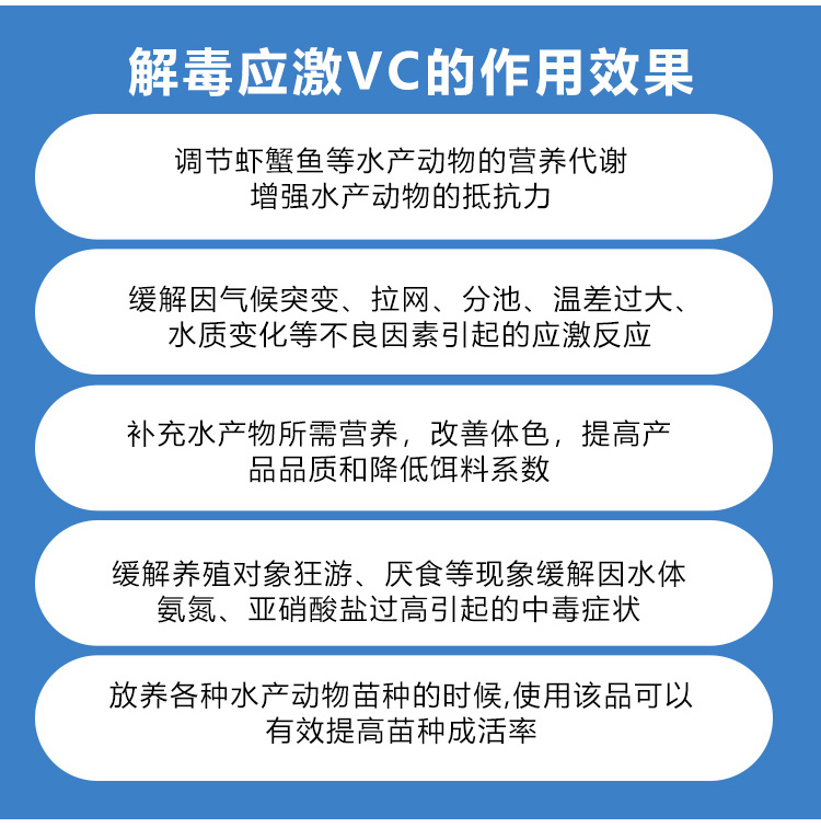 缓解因气候突变、拉网、分池、温差过大水质变化等不良因素引起的应激反应。" />
