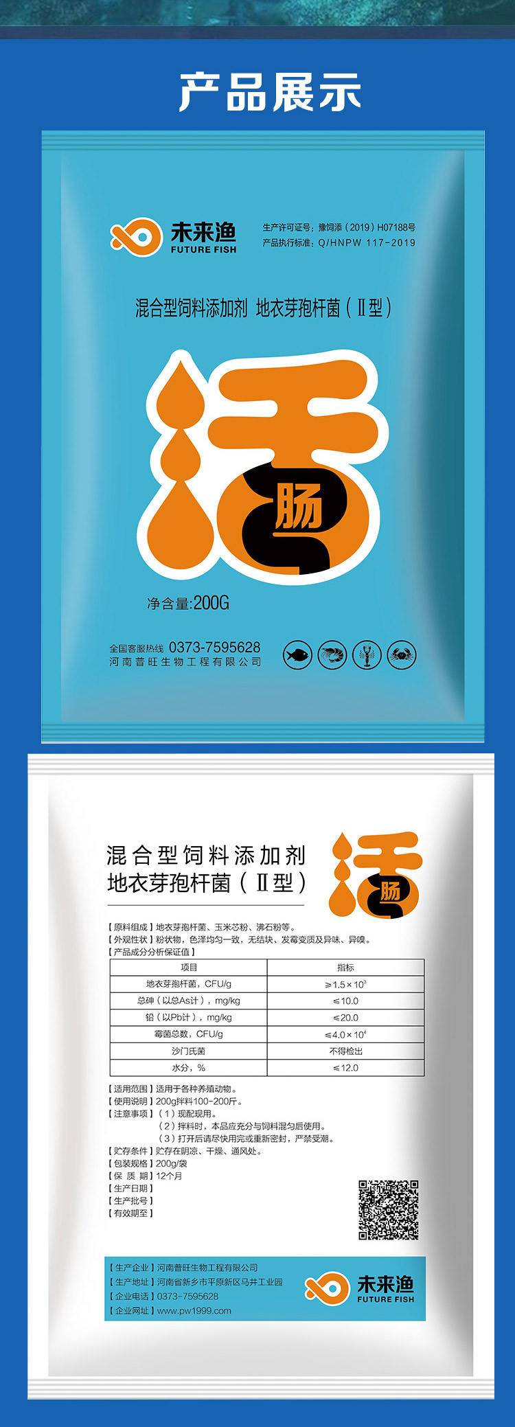 产品简介:普旺生物未来渔活肠 调节肠道诱食增料预防肠炎猛吃猛长 水产用药厂家 肠炎白便 修复肠道 空肠空胃 免疫促长 混合型饲料添加剂 地衣芽孢杆菌