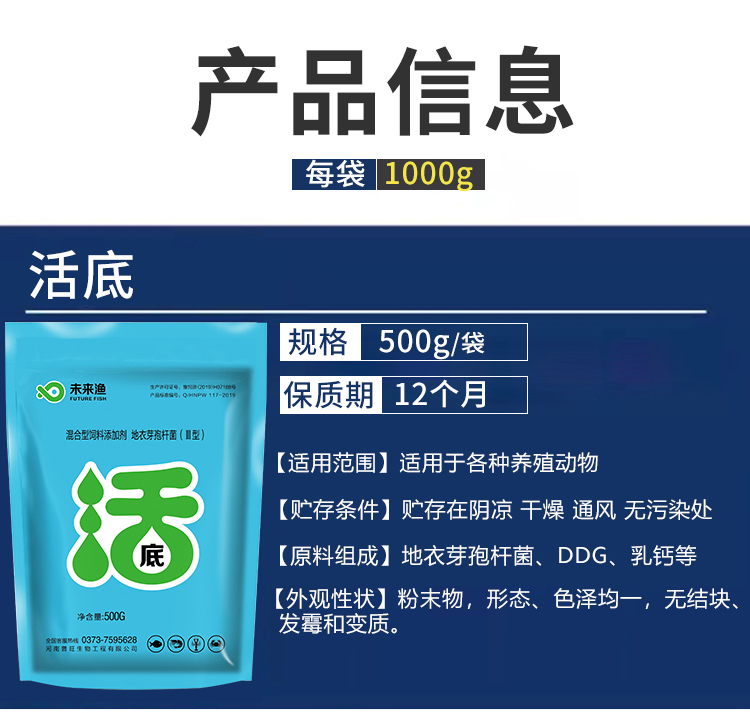 给水产动物一个健康舒适的家 活底 科学养殖 规格 500g/袋 保质期1个月 适用于各种水产养殖动物" />
