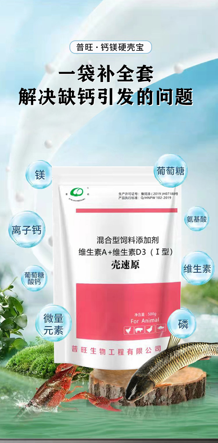 产品简介:普旺生物壳速原 快速补钙促进脱壳增强体质抵抗应激 补钙脱壳提高免疫水溶性好吸收好