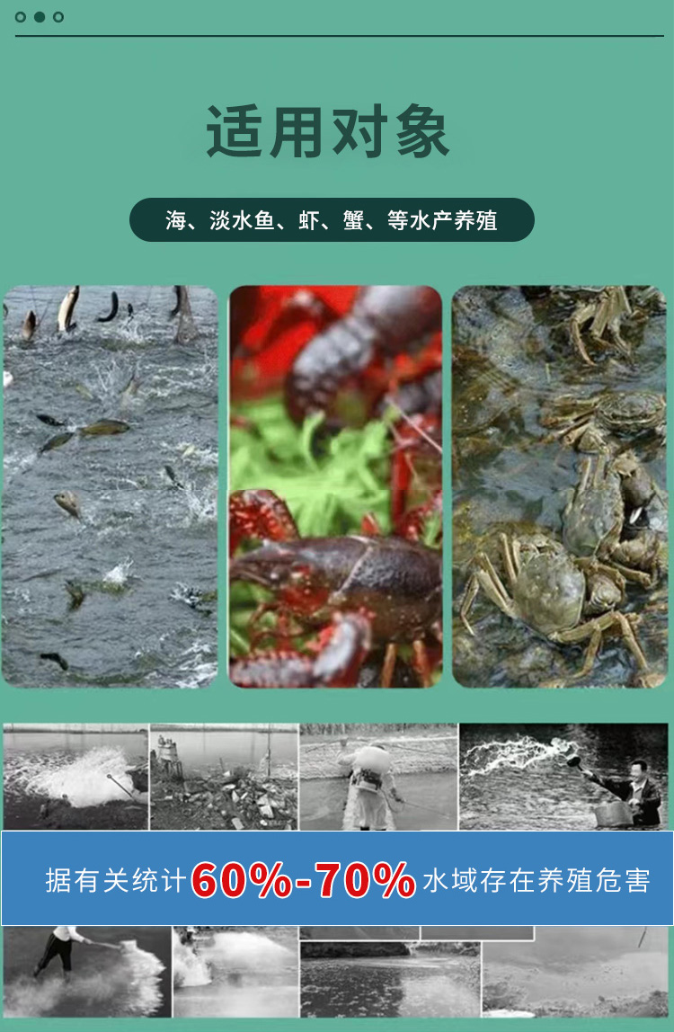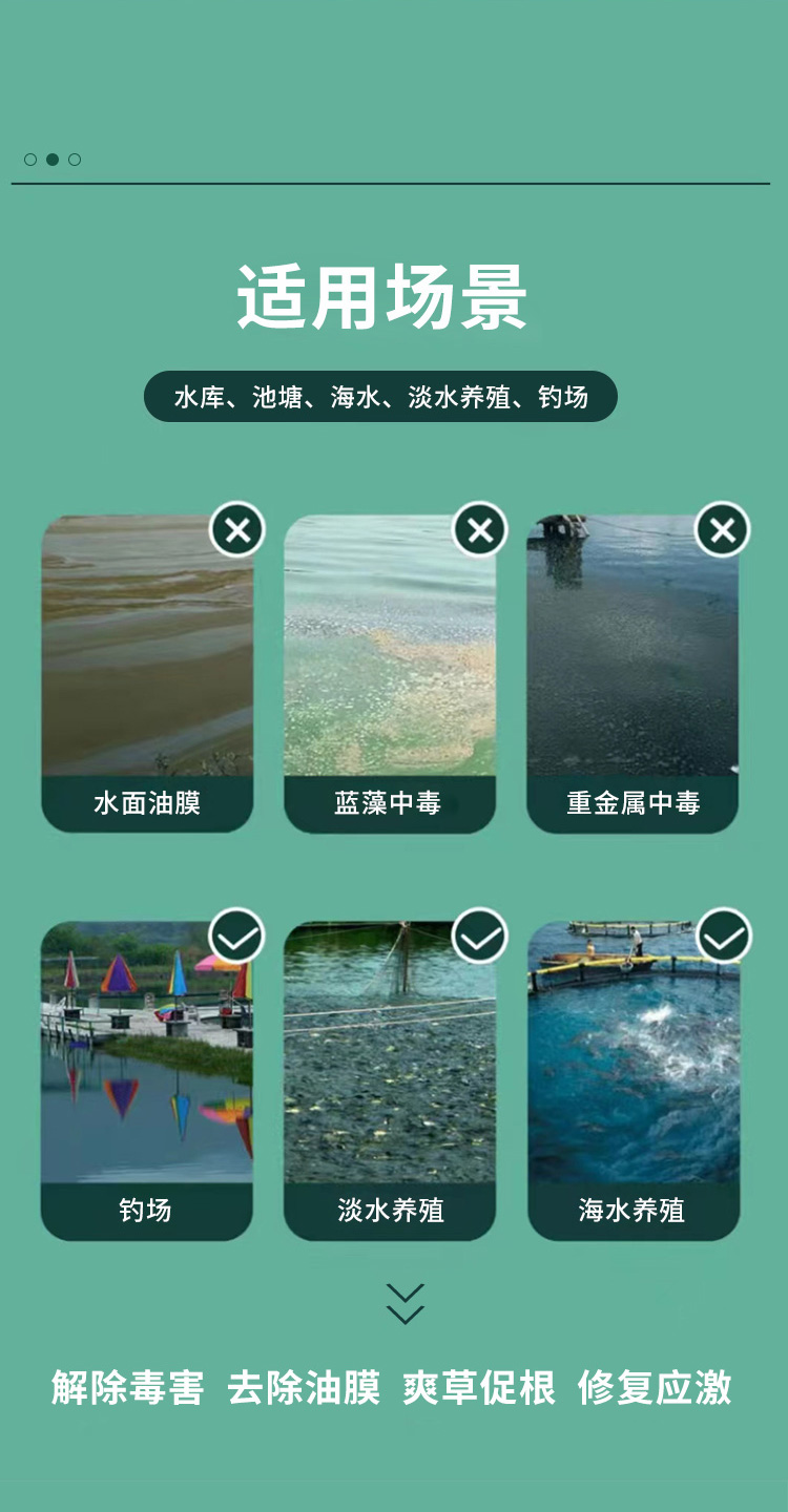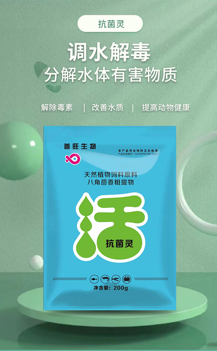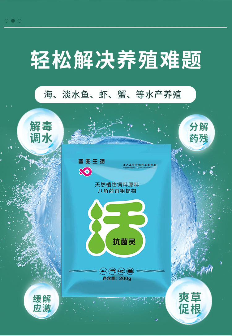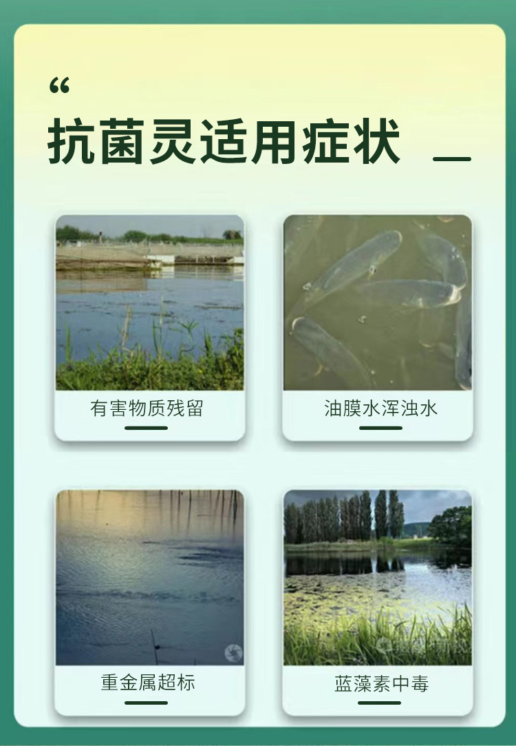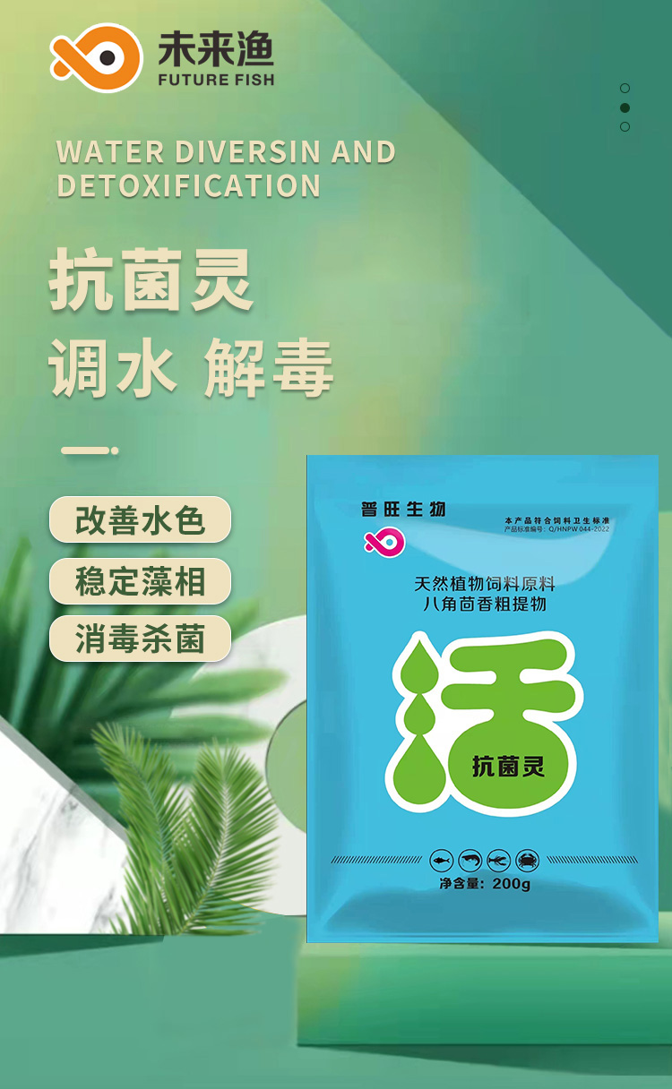 产品简介:未来渔抗菌灵 解毒调水改善水色稳定藻相消毒杀菌护水解毒灵 分解药残缓解应激为您的养殖保驾护航 改善水色,稳定藻相,消毒杀菌。