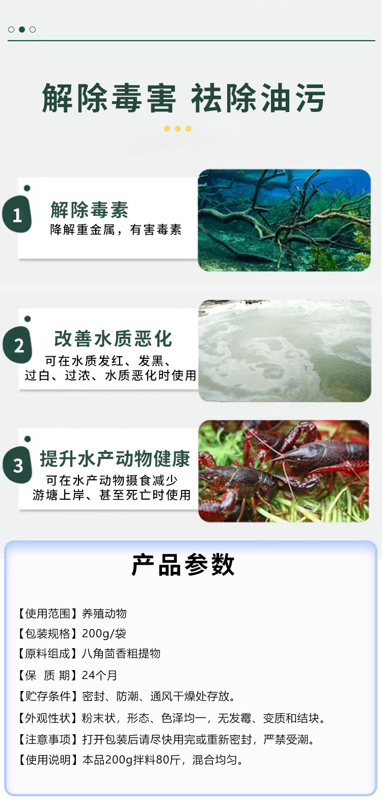 解毒调水改善水色稳定藻相消毒杀菌护水解毒灵 分解药残缓解应激为您的养殖保驾护航 改善水色,稳定藻相,消毒杀菌。" />