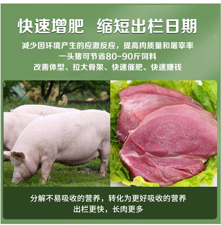 产品简介:普旺新版GMP兽药厂家肥无忧长肉快早出栏,益生菌促进营养吸收,快速增肥,缩短出栏日期,减少因环境产生的应激反应,提高肉质量和屠宰率,一头猪可节省80-90斤饲料,改善体型、拉大骨架、快速催肥、快速赚钱。