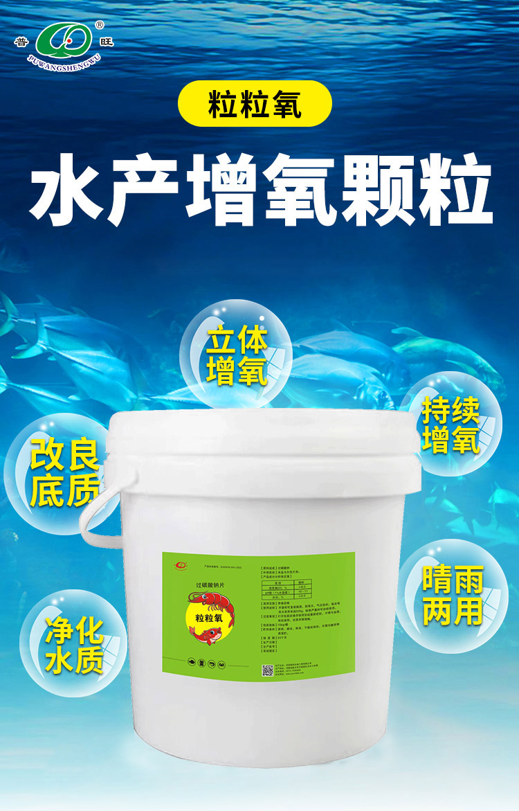 产品简介:普旺水产药厂家水产增氧颗粒持久放氧晴雨两用鱼塘应急改良底质