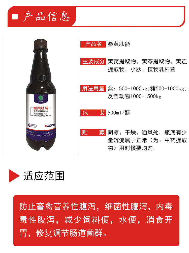 【适用范围】防止畜禽营养性腹泻,细菌性腹泻,内毒毒性腹泻,减少饲料便,水便,消食开胃、修复调节肠道菌群。