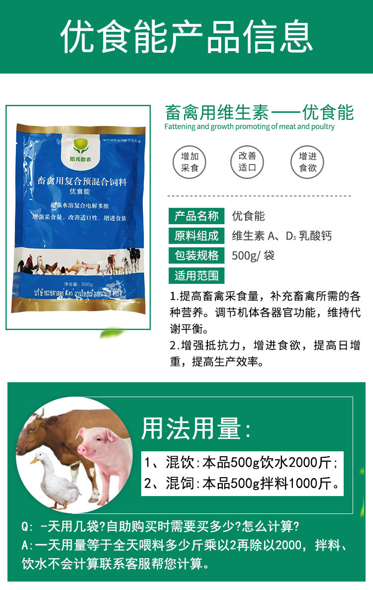 优食能 兽用超强水溶复合电解多维水产畜禽诱食剂