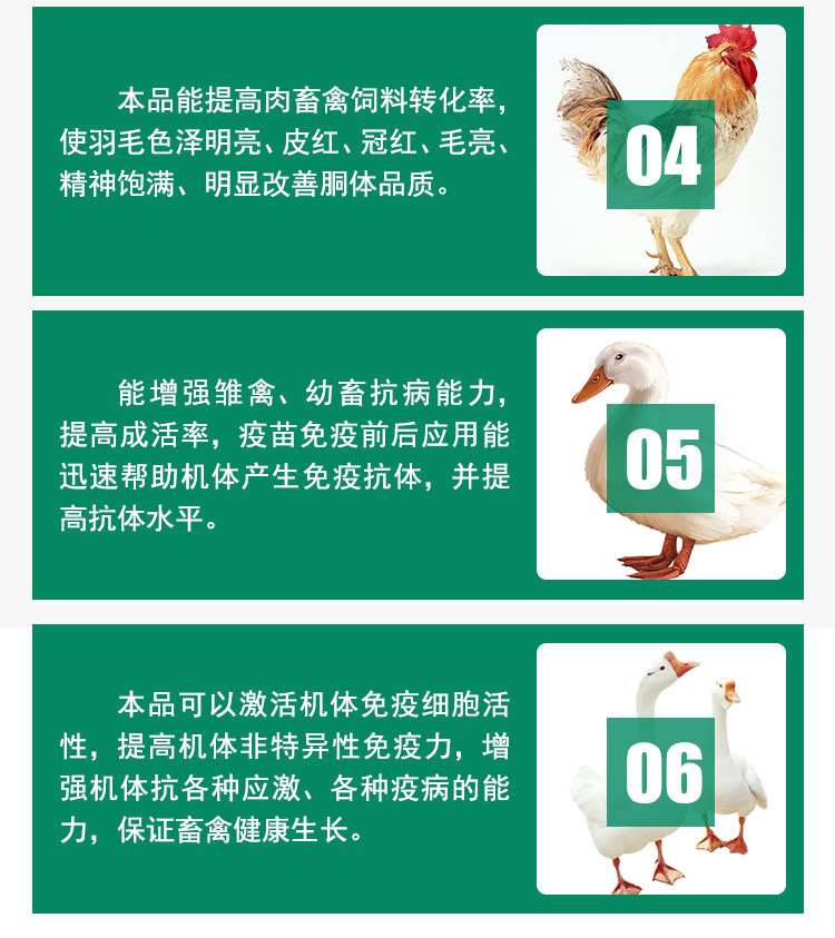 3、增进食欲,促进生长,明显提高日增重,提高生产效率。