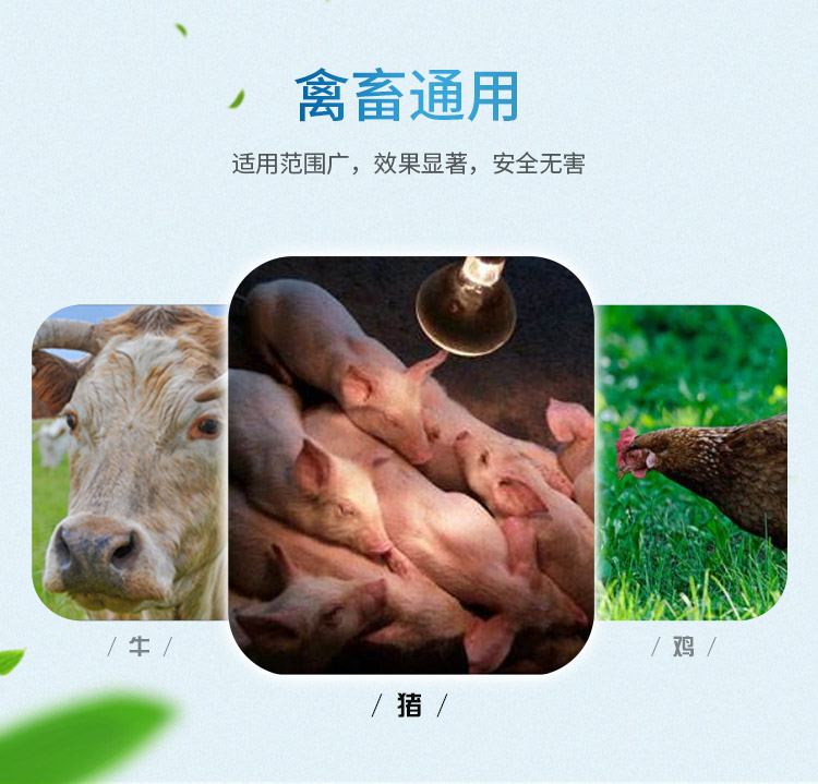 拌料:本品500g兑水1000斤,供畜禽自由饮用。