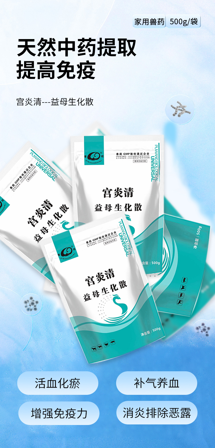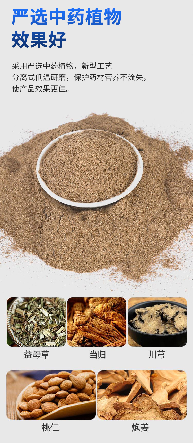 产品简介:益母生化散具有清热解毒、消炎抗菌、活血调经的作用。甘草抑制炎症,调和诸药。能够加快子宫收缩,促进子宫恶露排出,防止血瘀,减轻血瘀造成的腹痛。
