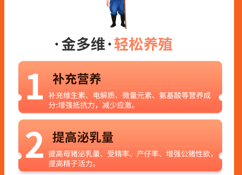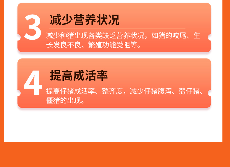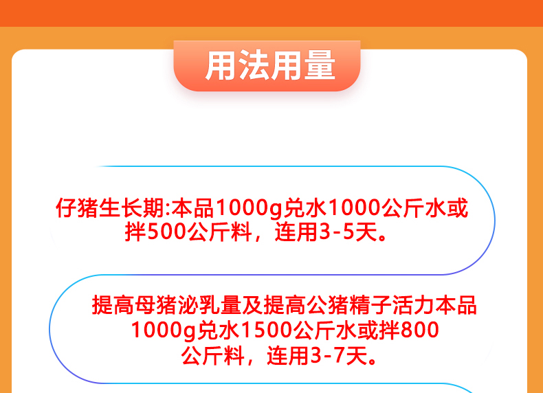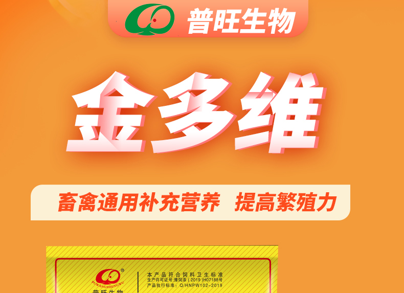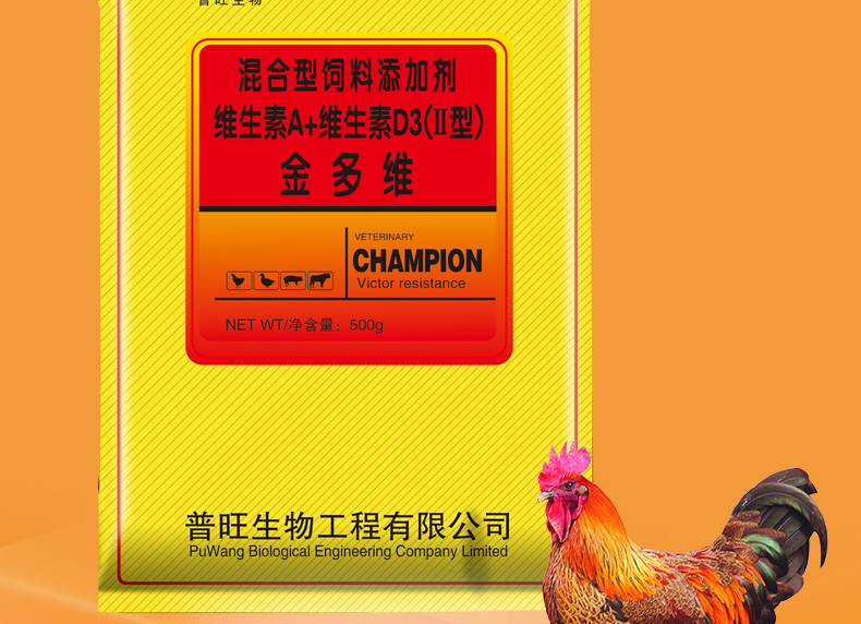 产品简介:畜禽增加营养改善体质增强免疫力 补充维生素,提高繁殖力 内含维生素A+维生素D3