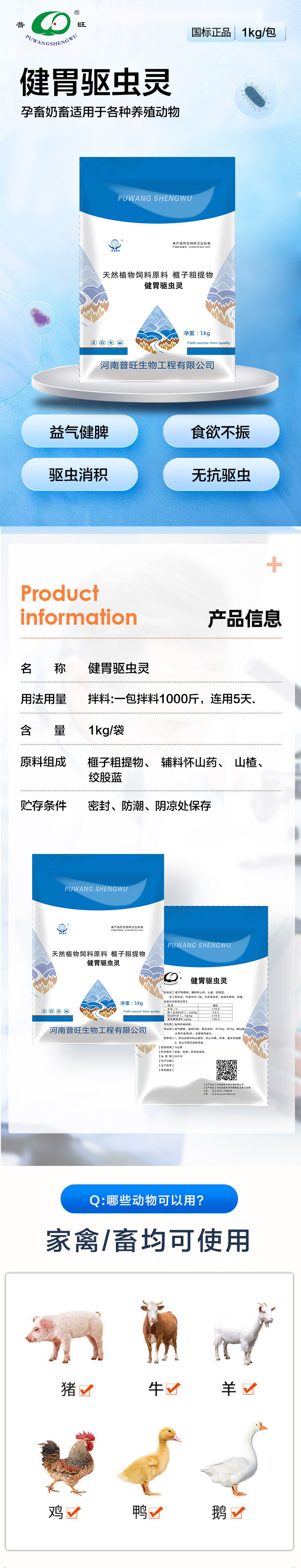 产品简介:益气健脾,驱虫健胃,孕畜奶畜可用